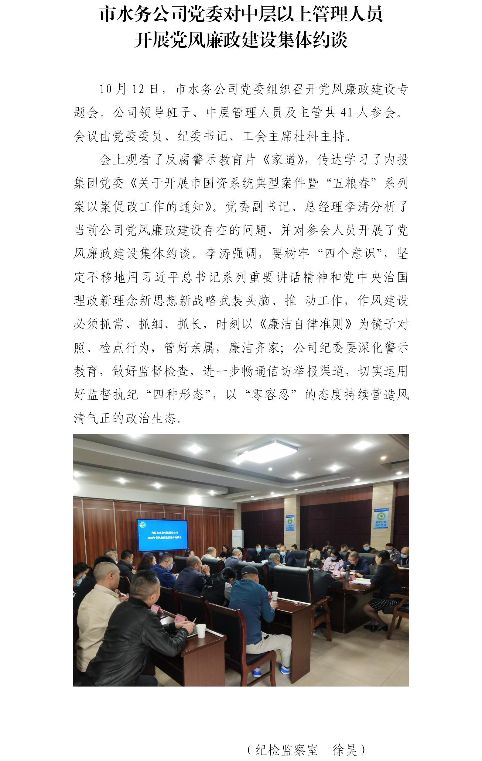 市水務(wù)公司黨委對中層以上管理人員開展黨風廉政建設(shè)集體約談