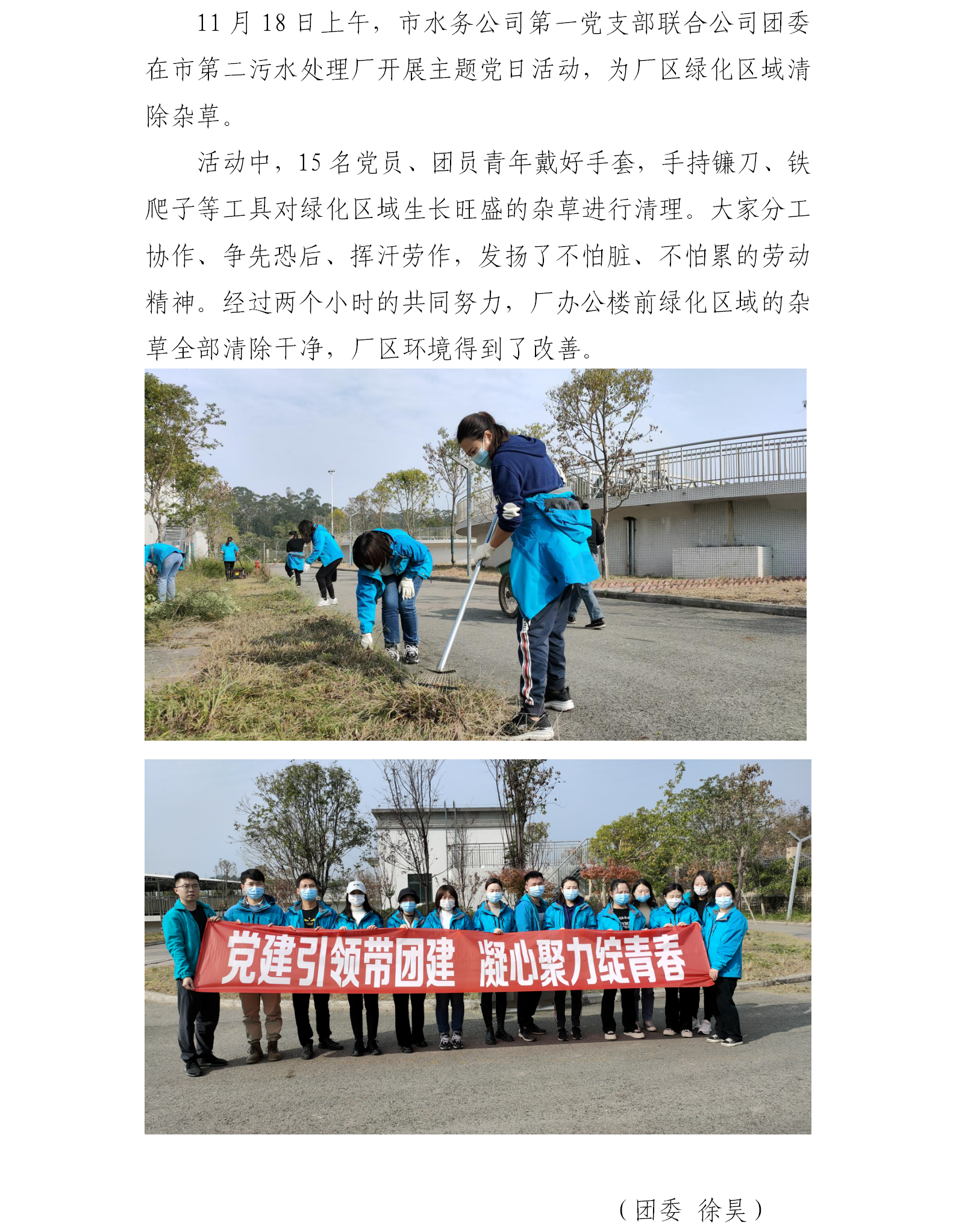 市水務公司第一黨支部聯(lián)合團委開展除草志愿服務