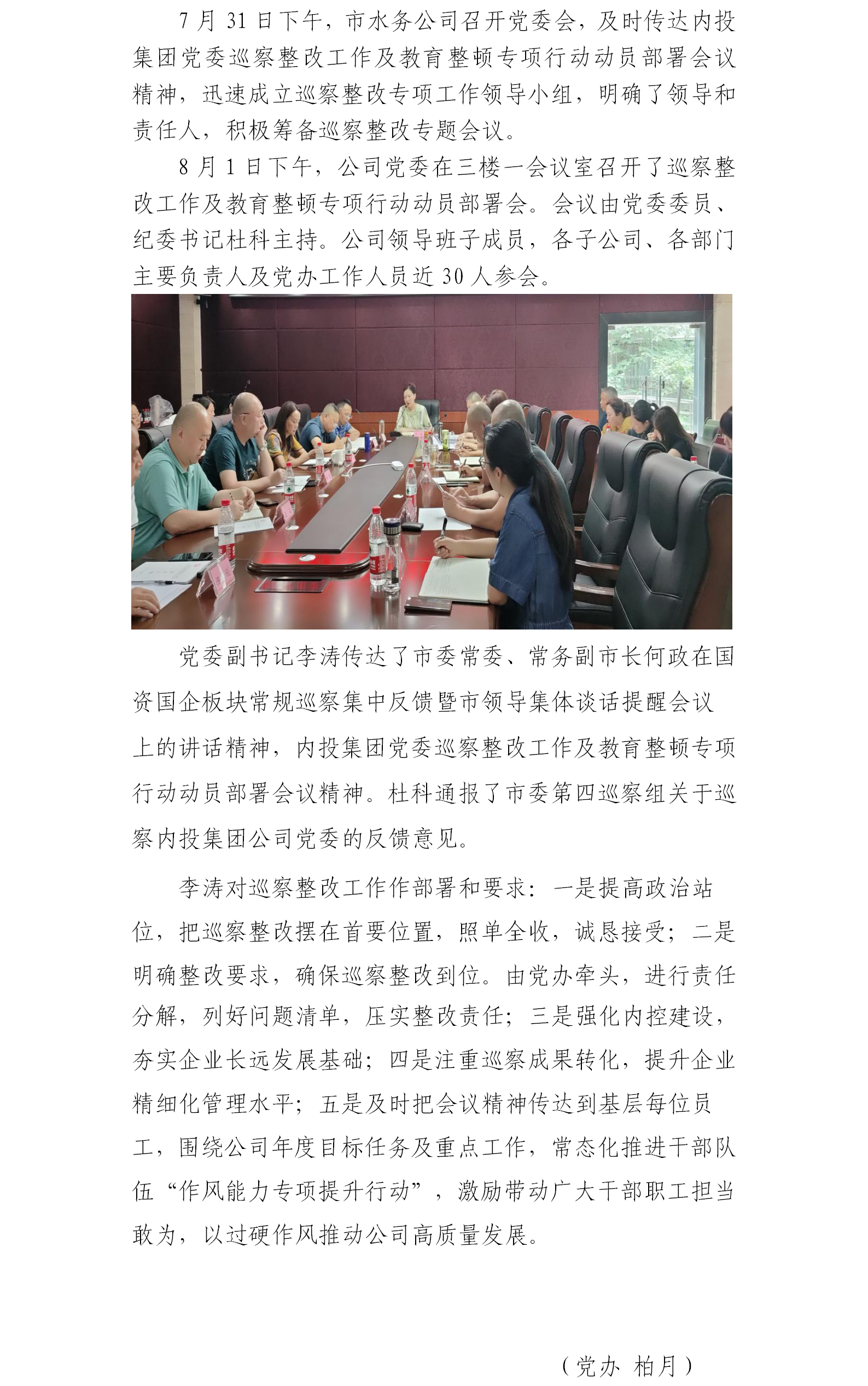 內(nèi)江市水務(wù)有限責任公司黨委召開巡察整改工作暨教育整頓專項行動動員部署會