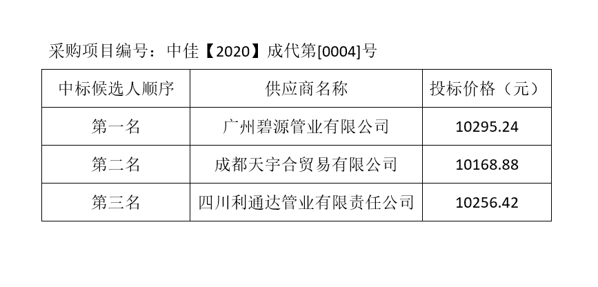 內江市水務有限責任公司襯塑復合鋼管及管件采購項目評標結果公示
