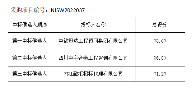 內(nèi)江市水務(wù)有限責任公司招標代理機構(gòu)服務(wù)供應(yīng)商采購項目評標結(jié)果公示