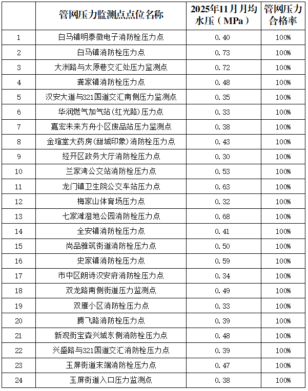 內(nèi)江市水務(wù)有限責(zé)任公司2025年11月管網(wǎng)壓力月報(bào)