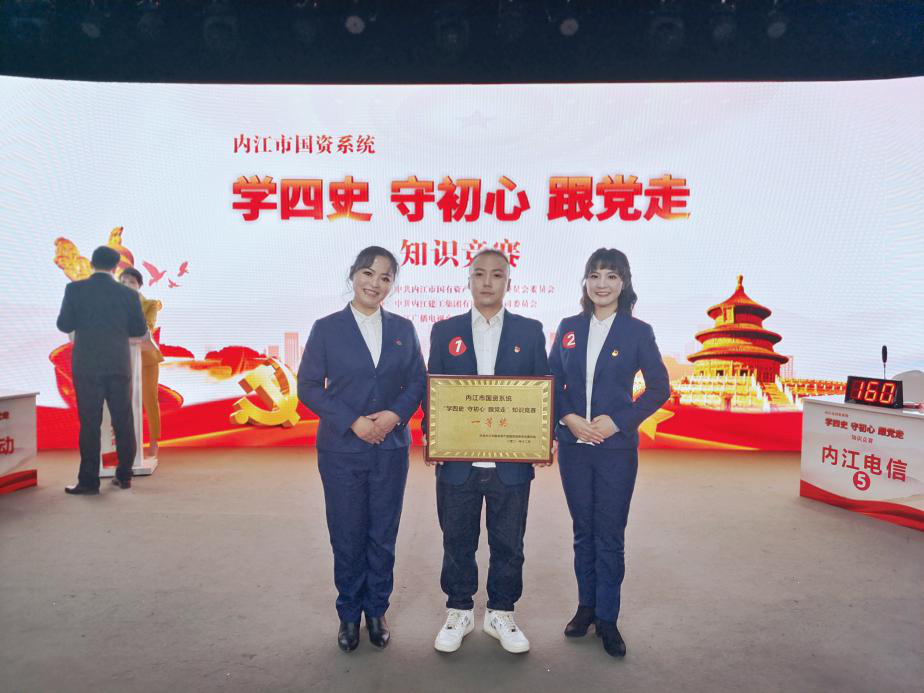 2021年12月28日下午,由中共內(nèi)江市國(guó)有資產(chǎn)監(jiān)督管理委員會(huì)委員會(huì)主辦,中共內(nèi)江建工集團(tuán)有限責(zé)任公司委員會(huì)承辦的內(nèi)江市國(guó)資系統(tǒng)“學(xué)四史 守初心 跟黨走”知識(shí)競(jìng)賽在內(nèi)江廣播電視臺(tái)演播大廳舉行。來(lái)自市級(jí)各企業(yè)的8支隊(duì)伍24名選手參賽,我司選派的劉梅、袁琳、熊瑞凱3名同志代表參加了此次競(jìng)賽。