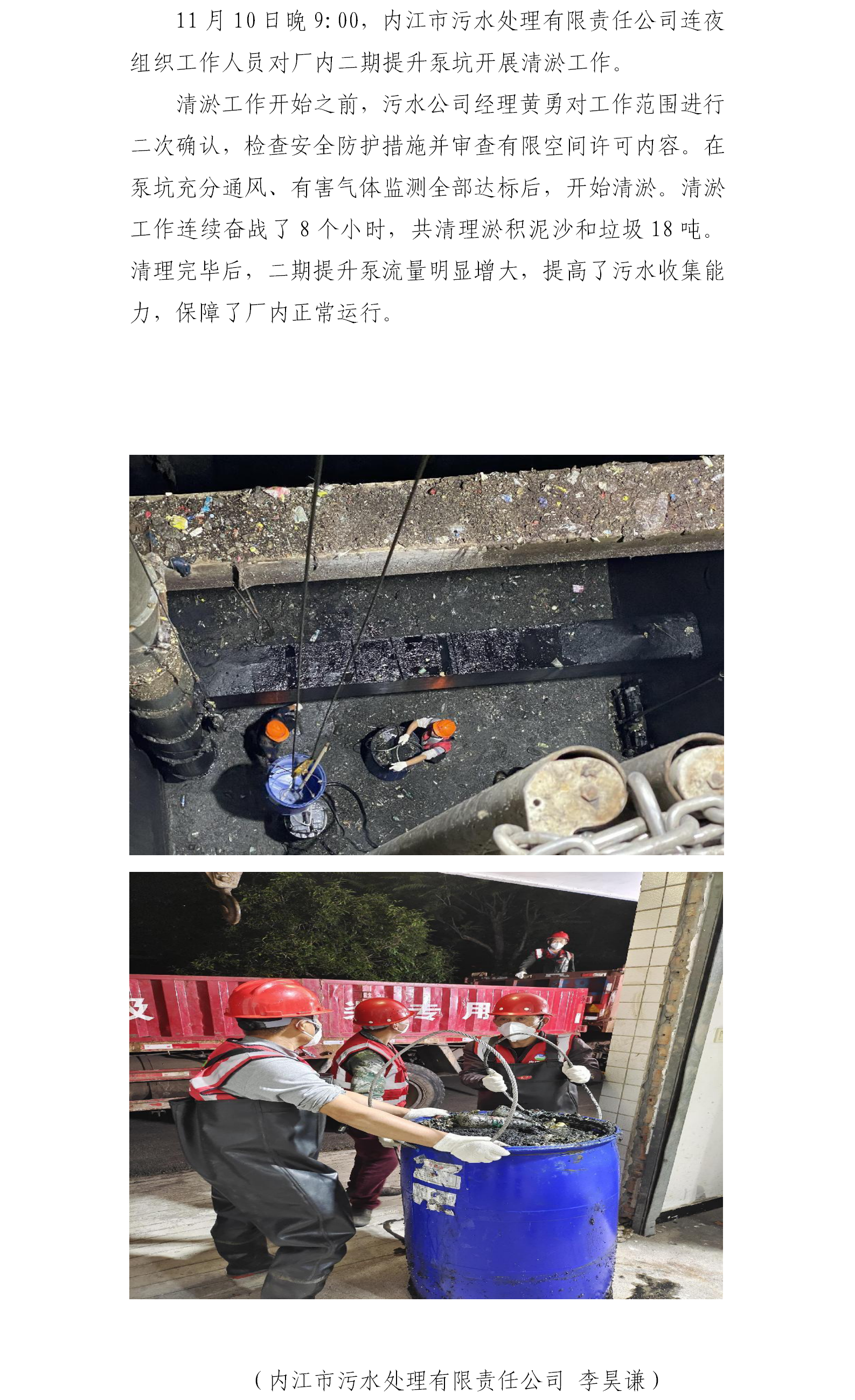 內江市污水處理有限責任公司提升泵坑清淤