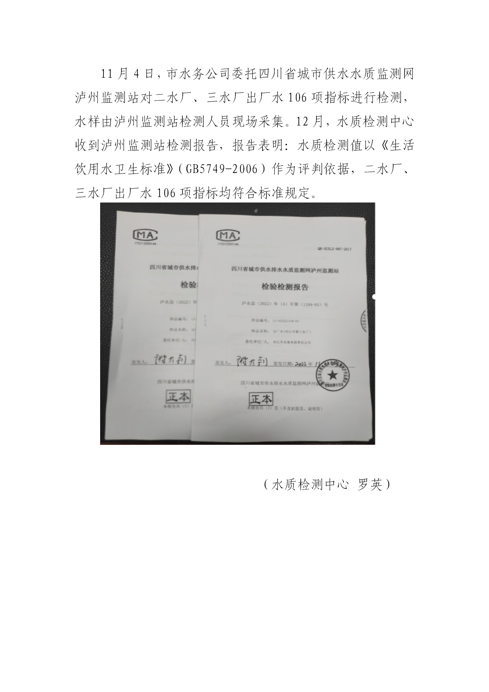 二水廠、三水廠出廠水106項指標(biāo) 符合國家標(biāo)準(zhǔn)要求