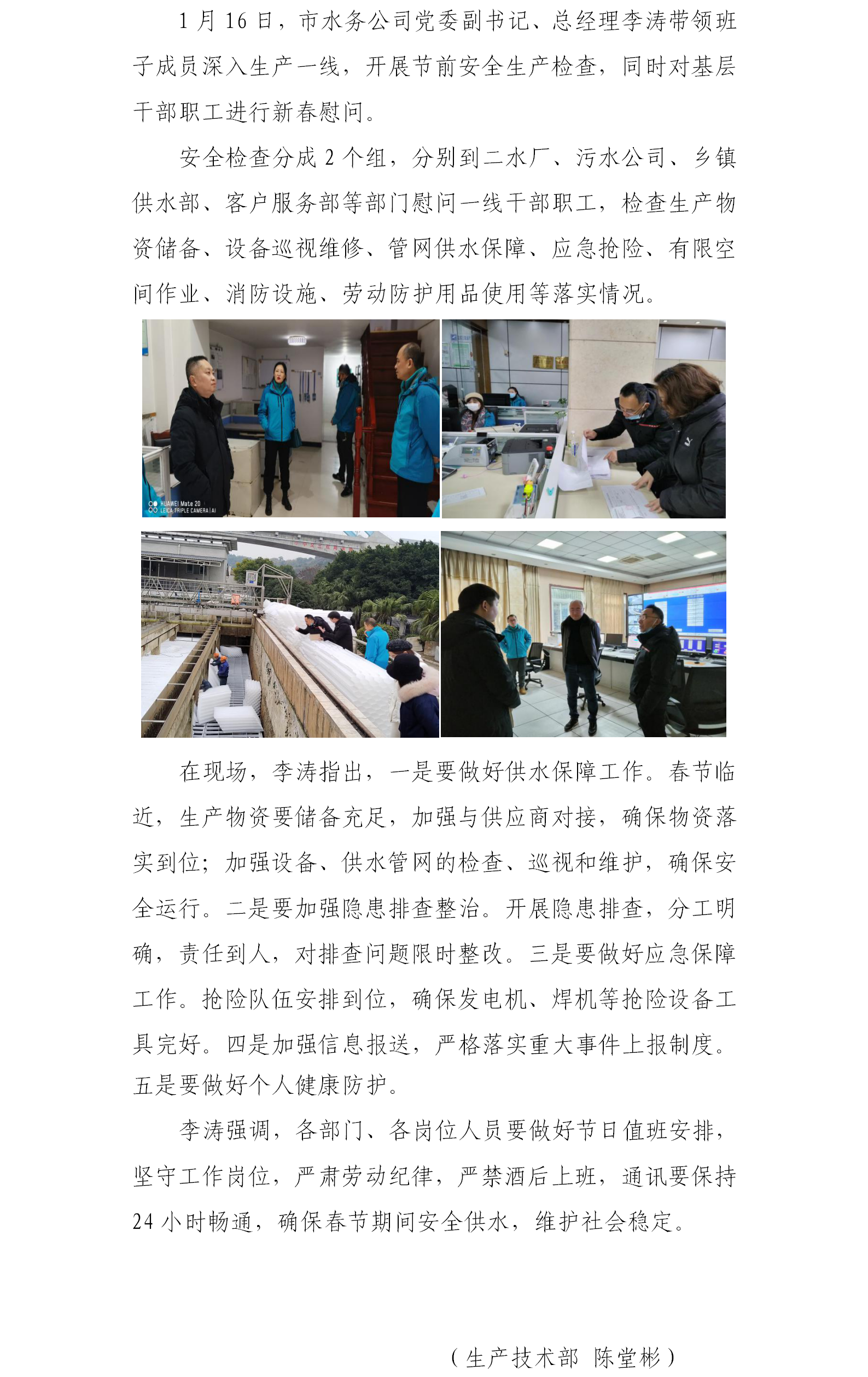 喜迎新春佳節(jié) 確保安全供水 ——市水務公司開展春節(jié)慰問檢查