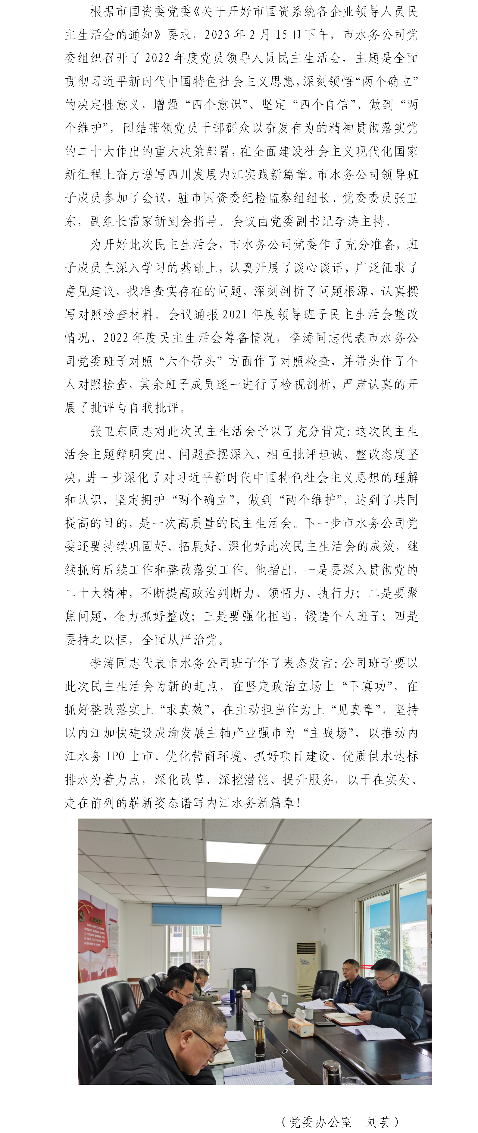 市水務(wù)公司黨委召開2022年度黨員領(lǐng)導(dǎo)人員民主生活會(huì)