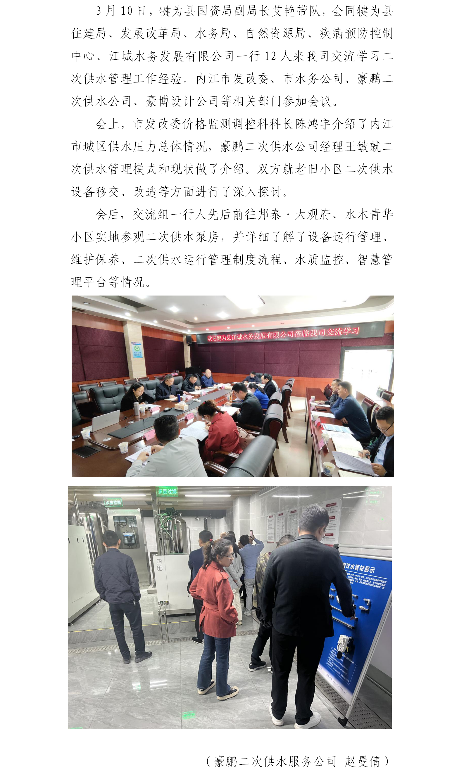 犍為縣江城水務(wù)發(fā)展有限公司到我司開(kāi)展二次供水管理交流