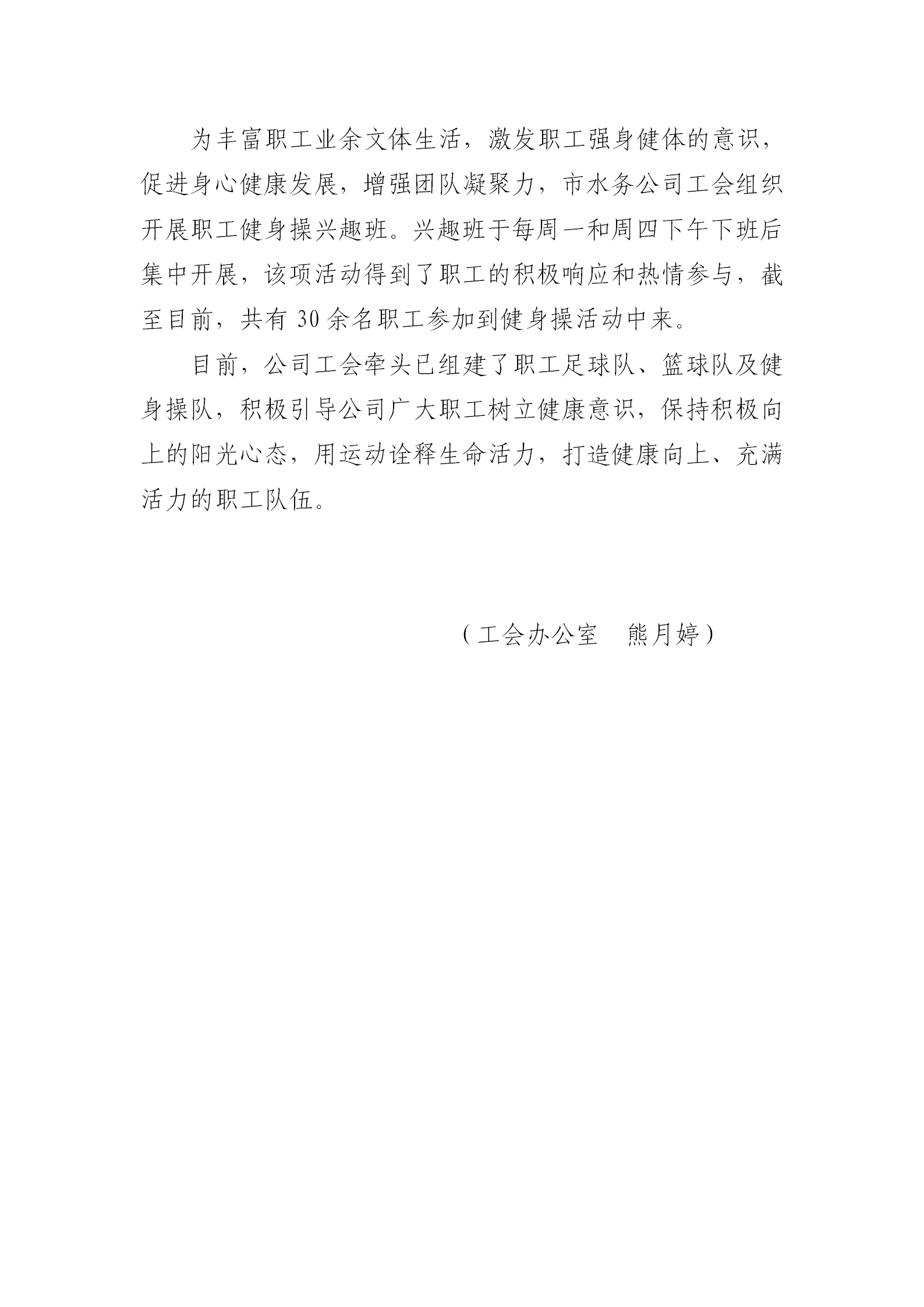 水務(wù)公司工會(huì)組織開展職工健身操興趣班