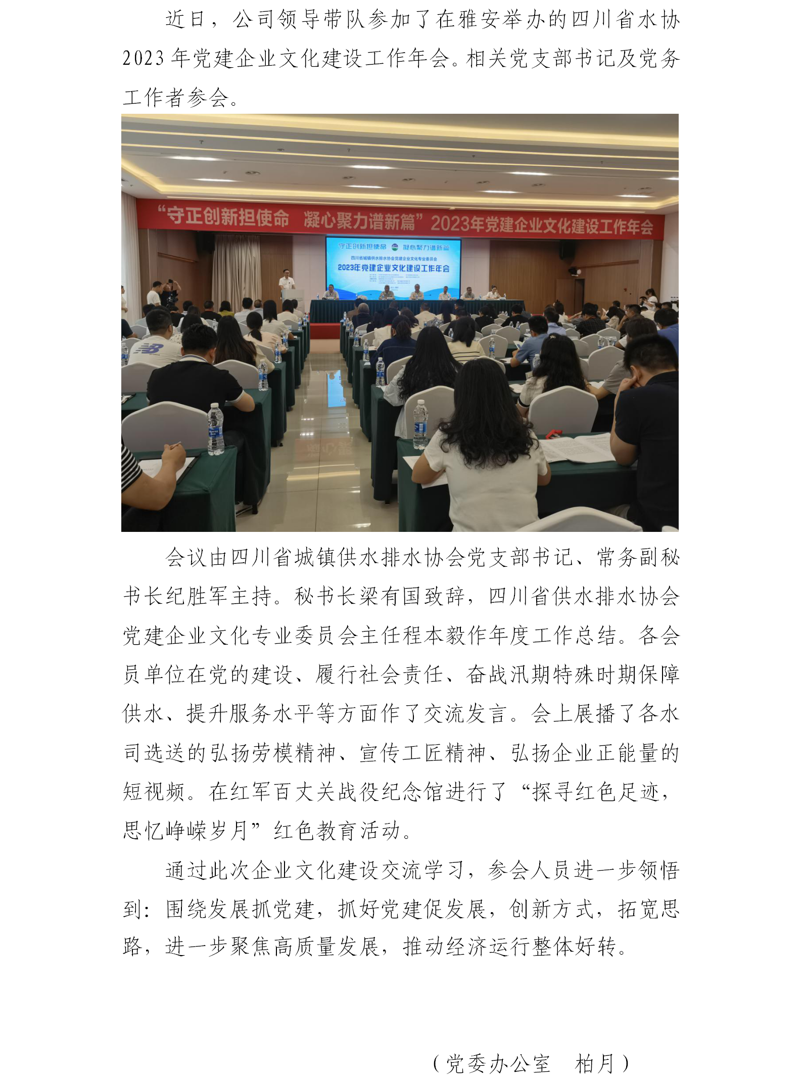 公司派代表參加四川省水協(xié)2023年黨建企業(yè)文化建設(shè)工作年會(huì)