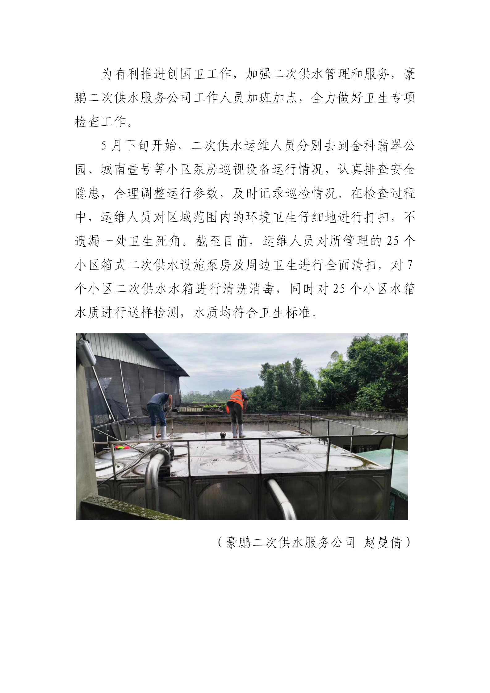 豪鵬二次供水服務(wù)公司開展供水泵房衛(wèi)生專項(xiàng)檢查工作