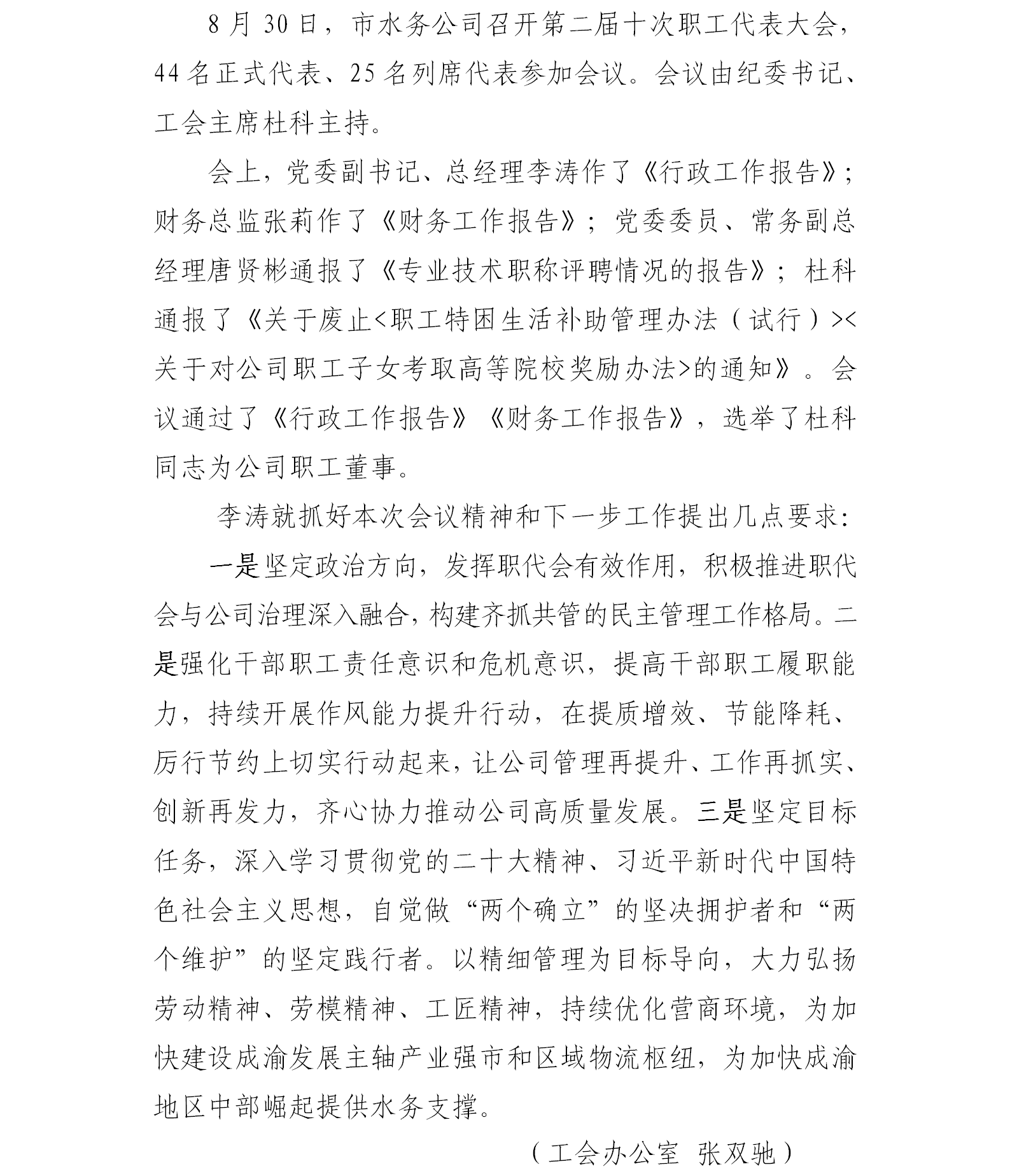 市水務(wù)公司召開第二屆十次職工代表大會