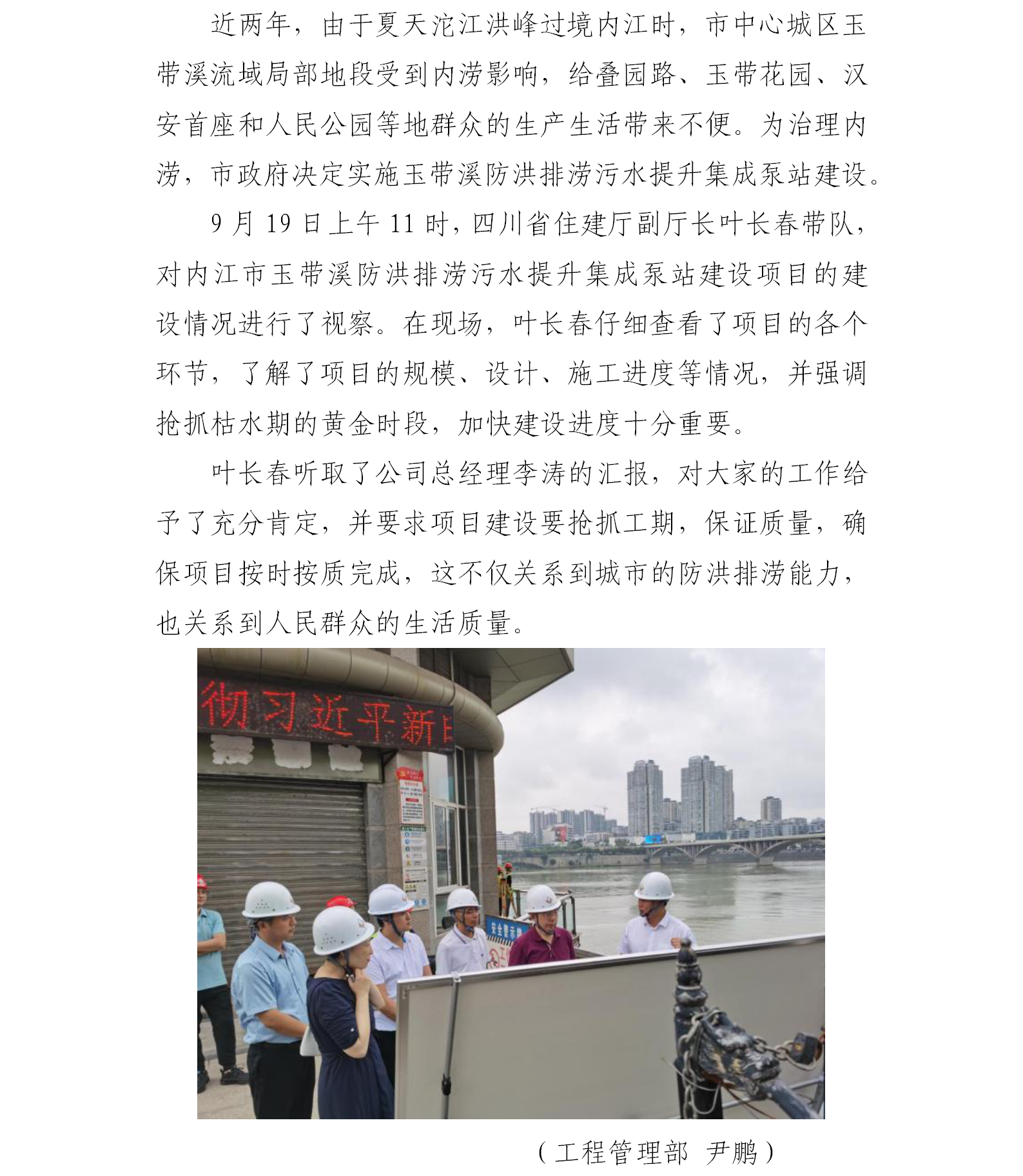 省住建廳副廳長葉長春視察玉帶溪泵站項目建設情況