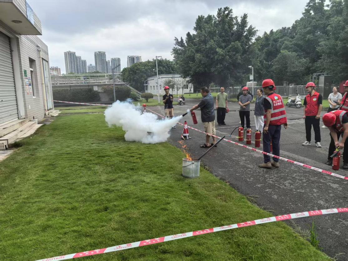 演練現(xiàn)場,市污水處理公司副經(jīng)理李昊謙向參演人員詳細講解了火災風險及滅火器的使用要點。隨后,模擬火情發(fā)生,員工們迅速響應,嚴格按照規(guī)范操作滅火器,成功撲滅“火勢”。整個過程緊湊有序,有效檢驗了應急預案的可行性,進一步強化了員工的火災防范意識和應急處置技能。