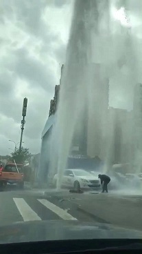搶修人員到達(dá)現(xiàn)場后,發(fā)現(xiàn)消火栓已被撞斷,大量自來水噴涌而出,形成10多米高的水柱,附近道路積水嚴(yán)重,對附近學(xué)校人員的出行造成嚴(yán)重影響。搶修隊員在渾濁的閘閥井里摸索著關(guān)閉閥門,及時排除安全隱患,經(jīng)過近一個小時的搶修,11時許,完成搶修,恢復(fù)供水。