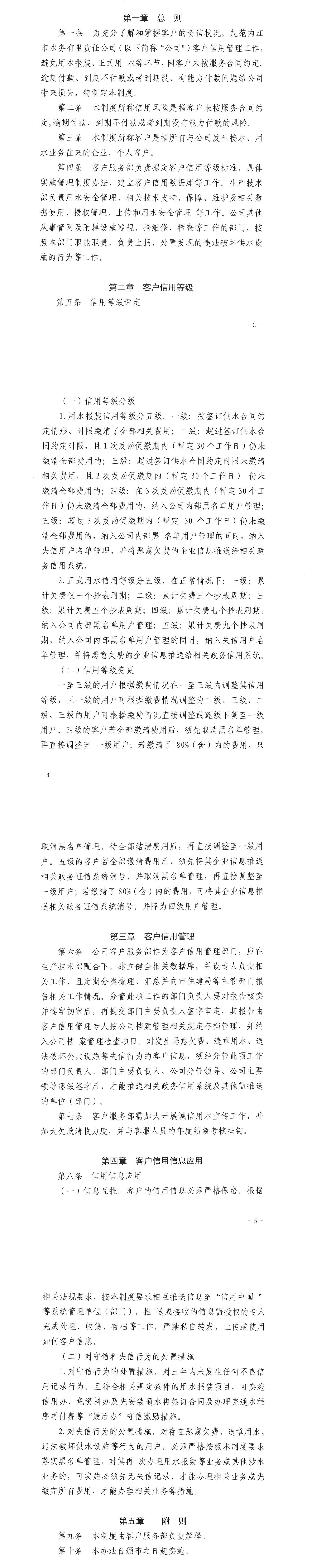 內江市水務有限責任公司客戶信用等級管理制度 (試行)
