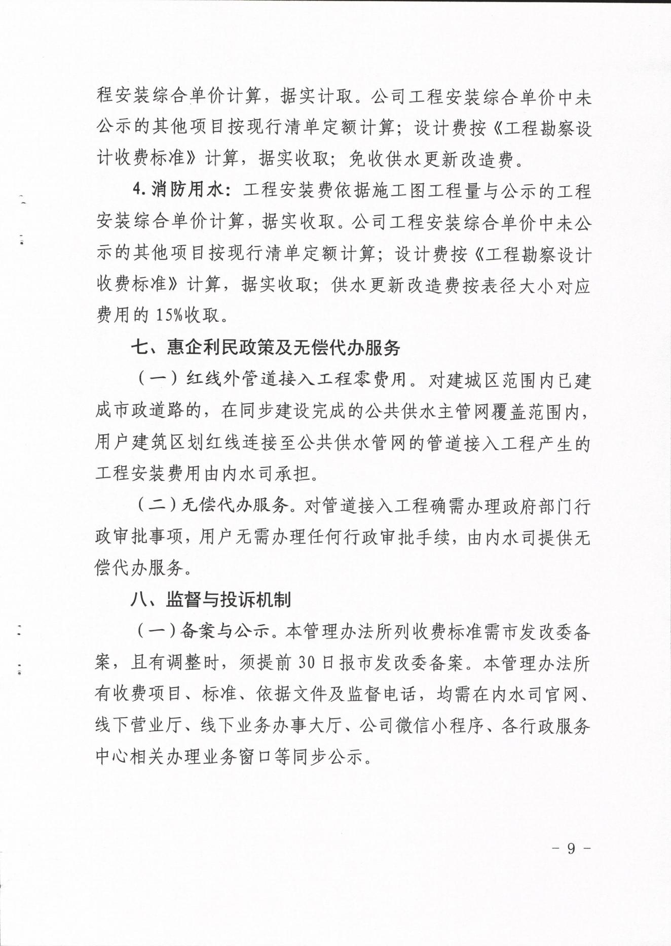 內(nèi)江市水務(wù)有限責(zé)任公司供水工程安裝及供水管道更新改造收費(fèi)管理辦法(試行)